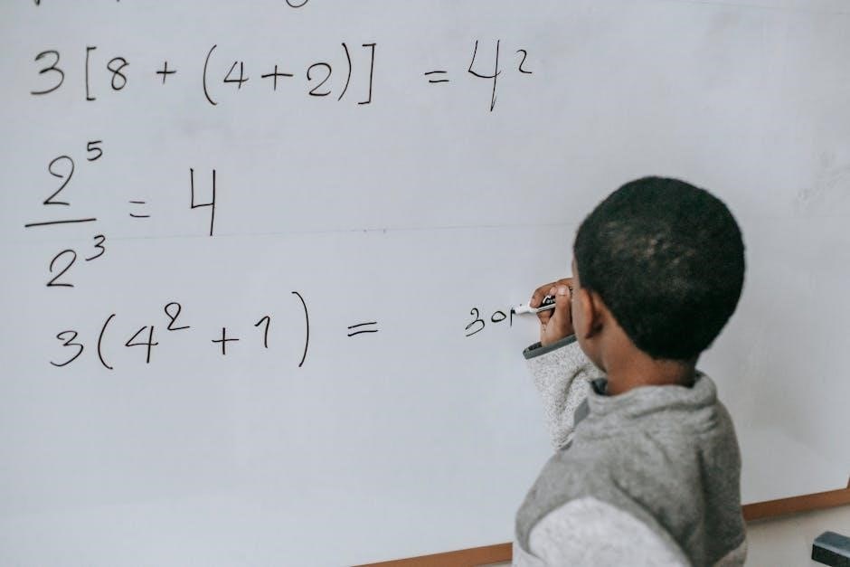 PDF worksheets often break down each step with clear examples. Answer keys provide immediate feedback, allowing students to identify and correct errors.